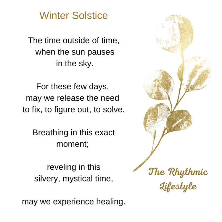 Rather than analyze the year past or create resolutions for the coming one, be present at this solstice moment.